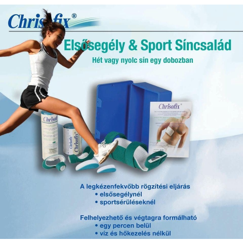 Chrisofix Felnőtt elsősegély doboz (borda sínnel) Chrisofix elsősegély doboz borda sínnel felnőtt Elsősegélyre és sportsérülésekre. A doboz tartalma: -Ujjsín csomag (1 db S + 1 db L) -Rövid ujjtő sín -Hüvelykujj sín -Voláris csuklósín -Feltekerhető