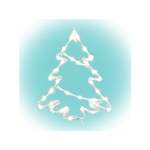 1 kép CHRISTMAS LIGHTING LED-es ablakdísz, fenyőfa, 6/18h időzítő, adapteres, melegfehér (KID502WW)