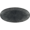 Fekete, ovális, lapos Churchill Agano Black tányér, porcelánból készült. Méretek: hosszúság 299 mm és szélesség 150 mm. Alkalmas mindennapi használatra és ünnepi alkalmakra egyaránt.