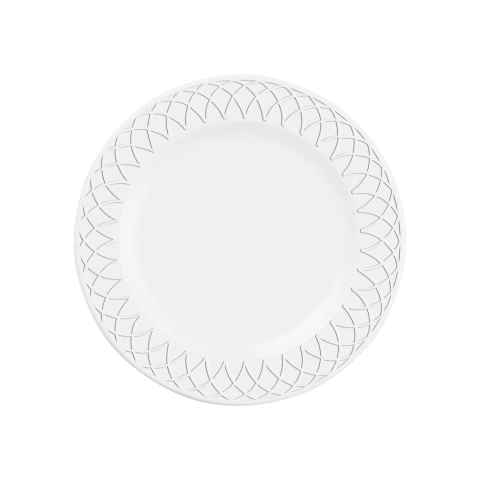 Fehér, sekély Churchill Alchemy Jardin tányér 254 mm átmérővel. A tányér kiváló minőségű porcelánból készült, dombornyomott díszítéssel. Ideális főételek tálalásához.