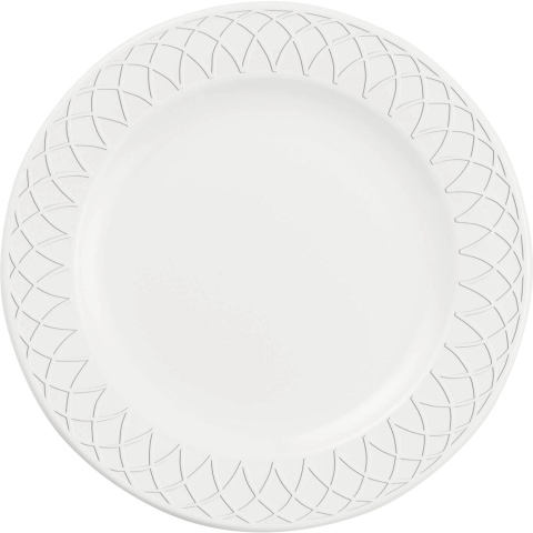 A Churchill Alchemy Jardin sekély tányér jó minőségű fehér porcelánból készült. A tányér átmérője 268 mm, és dombornyomott díszítéssel rendelkezik. Alkalmas főételek és desszertek tálalására. Elegáns kialakításának köszönhetően bármely étkezőbe és minden alkalomra megfelel. A porcelántányér ideális mindennapi használatra és ünnepi alkalmakra is. A Churchill márka a minőség és tartósság garanciája.