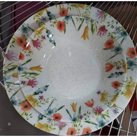 Dekoratív, virágmintás 18 darabos kerámia étkészlet.