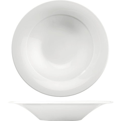 Mély tányér Churchill Art de Cuisine Menu 0,28 l űrtartalommal és 228 mm átmérővel. A fehér tányér porcelánból készült.