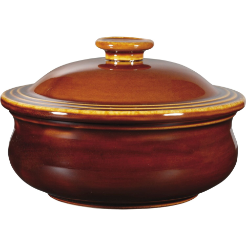 Barna kerámia párolófazék Churchill Art de Cuisine Rustics fedővel. Űrtartalom 0,43 l és átmérő 140 mm. Kiváló minőségű kerámiából készült, ideális ízletes ételek elkészítéséhez. Minden konyhába alkalmas.