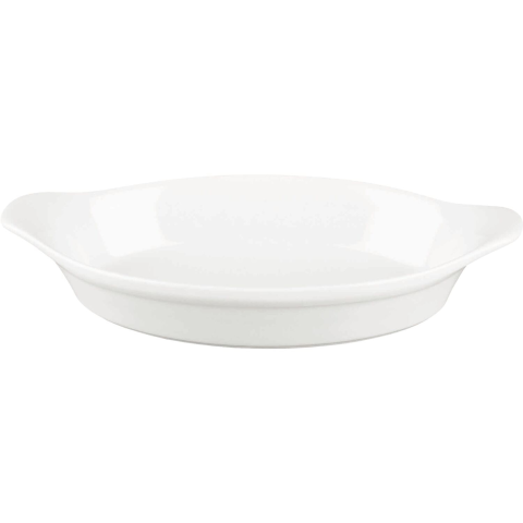 Churchill ovális szervírozó serpenyő fehér színben, füllel. Kiváló minőségű porcelánból készült. Az edény űrtartalma 0,78 l, hossza 280 mm és szélessége 156 mm. Alkalmas ételek tálalására.