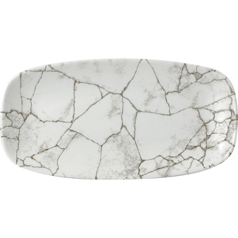 CHURCHILL Kintsugi achát-szürke sekély tányér, 298 mm hosszú és 153 mm széles. Kiváló minőségű porcelánból készült. Tányér eredeti Kintsugi Agate Grey dizájnnal.
