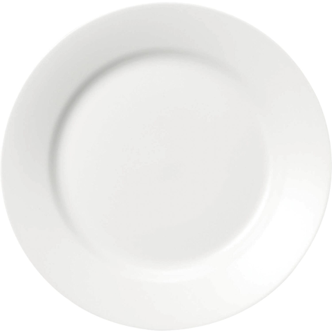 Fehér Churchill mediterrán lapostányér, 285 mm átmérővel. Kiváló minőségű porcelánból készült. Ideális mindennapi étkezésekhez és ünnepi alkalmakhoz.