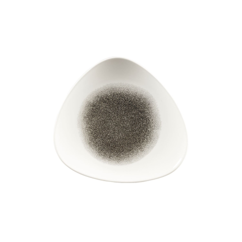 Churchill Raku Quartz fekete, sekély, háromszög alakú tányér, átmérője 229 mm. Kiváló minőségű porcelánból készült. Ideális az ételek elegáns és stílusos tálalásához.