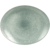 Ovális, sekély Churchill Raku Topaz topázkék tányér, hossza 270 mm és szélessége 229 mm. Kiváló minőségű porcelánból készült. Elegáns dizájn mindennapi és ünnepi étkezésekhez.
