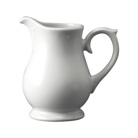 Fehér Churchill porcelán kiöntő, 0,28 literes űrtartalommal és 120 mm magas. Ideális tejszín, mártások vagy öntetek tálalásához. Minőségi porcelánból készült.