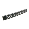 Az alumínium betűjelvény a Vespa 50 special váltós robogók hátsó részére készült. A jelvény 2 tűvel rendelkezik és enyhén hajlított formával rendelkezik. Szélessége: 132 mm, magassága: 17 mm, lyukak közti távolság: 110 mm. Az OEM-számot (gyártói cikkszám)