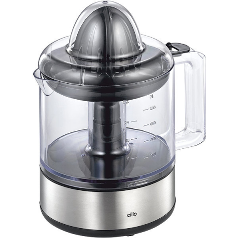 Gyümölcscentrifuga citrusfélékhez - elektromos, lassúprés, 1400 ford/perc, 1 sebességfokozat, töltőnyílás mérete 100 mm, létartály űrtartalma 0,8 l, álló tengely, vezérlés gombokkal, konstrukció anyaga fém és műanyag, csiga anyaga műanyag, légyűjtő tartály anyaga műanyag, szűrő anyaga rozsdamentes acél, 70 dB zajszint, ezüst kivitel, méretei 22 × 14 × 14 cm (ma × szé × mé), létartály és péptartály a csomagban Ha szereted a frissen préselt gyümölcs-
