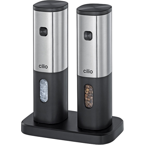 Fűszerdaráló - elektromos, állítható őrlési finomság, megvilágított daráló kimenet és átlátszó tartály, műanyag és rozsdamentes acél konstrukció, kerámia őrlőmechanizmus, elemes tápellátás, használatához 8 AAA elem szükséges, elemek, töltőkábel, tisztító kefe és 2 daráló a csomagban, méretei 19 × 15,6 × 8 cm (ma × szé × mé), tömege 600 g