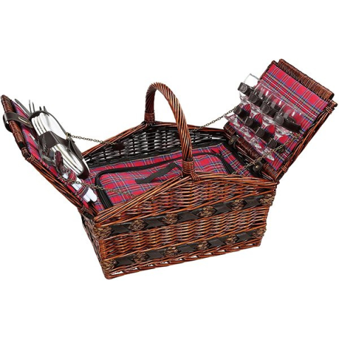Piknikkosár 4 személyes - fonott, szögletes, belső rendező, billenő fedéllel és pántokkal zárható, evőeszköz, tányérok és pohár a csomag része, barna, mérete 20 × 40 × 28 cm (Ma×Sz×Mé) Gyakran töltöd a szabadidődet a természetben? Szoktál grillezni, vagy csak úgy magaddal vinni valami finomságot? Egy családi program vagy buli a haverokkal? A legfontosabb mindig a jó ennivaló. Készít