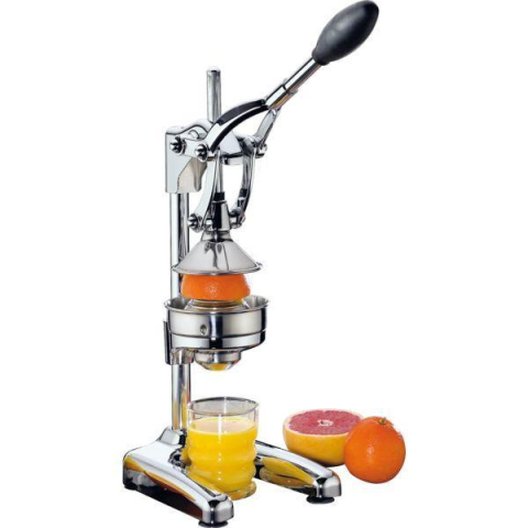 Professzionális kézi citrusfacsaró. A facsaró a citrusok egyszerű facsarására alkalmas. Nem facsarható vele gránátalma! Minőségi rozsdamentes acélból készült. 4 darab tapadókorong segítségével rögzíthető az asztalhoz, amelyek megakadályozzák a facsaró mozgását a folyamat közben. Könnyen tisztítható, mivel a szerkezet szétszedhető. Súlya: 4,5 kg. Mindkét része kivehető, amelyeket meg kell tisztítani a facsarás után (rozsdamentes rostszűrő és a gyűjtő