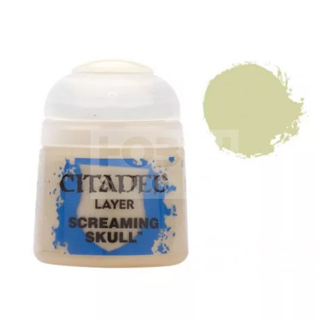 Citadel Colour Layer - Screaming Skull 12 ml akrilfesték 22-33 A Citadel Layer akrilfestékek a Citadel festékcsalád legnépesebb tagja, több mint 90 féle árnyalat áll rendelkezésünkre. Alkalmazása elsősorban a Citadel Base festékrétegre javasolják hígab