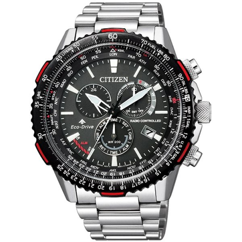 Karóra férfiaknak - analóg idő megjelenítés, óramű típusa quartz, kerek számlap, fényvisszaverő elemek, elegáns, arab indexek, zafír számlap, 200 m (20 ATM) vízhatlanság, a tok anyaga sebészeti acél, a tok színe fekete és ezüst, a szíj anyaga orvosi acél, a szíj színe ezüst A kiváló minőségű CITIZEN Promaster Sky Pilot Global R CB5001-57E férfiaknak karóra remek választás a mindennapkora. Az alapját egy 47 mm átmérőjű kerek számlap képezi. Az effektív