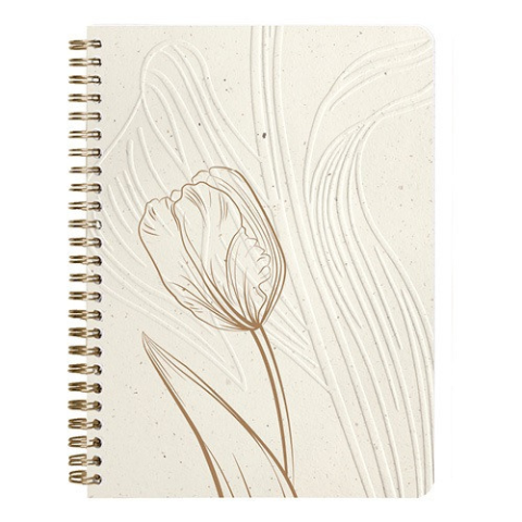 Jegyzetfüzet Clairefontaine Tulip paper, spirálos, A/5, 14,8x21cm, 74 lapos, pontozott Természetesen egyszerű, texturált borítású Tulip kollekció a Clairefontainetől. Elefántcsont színű, velin papír, 74 lapos, spirálos, pontozott Mérete: A5 - 14,