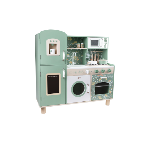 A gyönyörű CLASSIC WORLD konyha remek választás azoknak a gyerekeknek, akik szeretnek a mindennapi életben megfigyelt felnőtteket megszemélyesíteni. Ez a fa játékkonyha túlnyomórészt zöld színű, gyönyörű virágmintákkal, így a gyerekek élvezhetik a klasszi