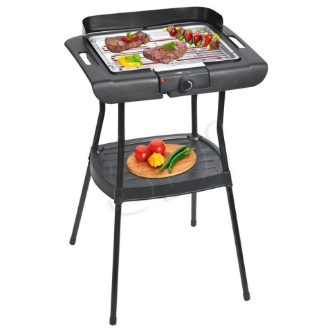 24 hónap garancia Állványrács vonzó kialakítású, alacsony füstkibocsátással és alacsony szaggal Állítható termosztát LED-el Krómozott grill rács Kivehető grill és fűtőelemek a könnyű tisztítás érdekében Hűvös érintőház Fém csepegtető tálca Szélvédelem Középső polc Átalakítható asztali grillre Grill magassága: kb. 80 cm Grillezési felület: 35,5 x 24,5 cm Tápegység: 230 V, 50 Hz Tápfeszülts