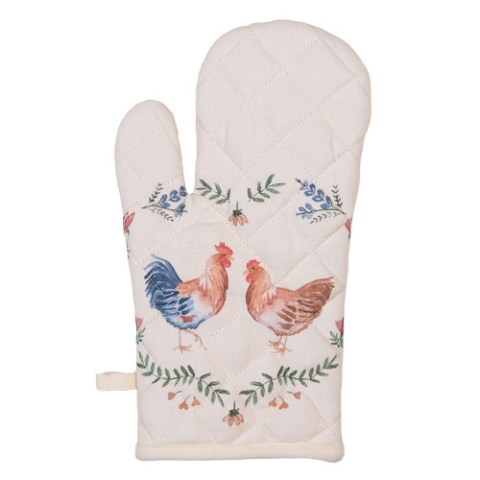 Clayre & EEf Edényfogó kesztyű 18x30cm, pamut, Chicken and Rooster lakástextília termékleírás