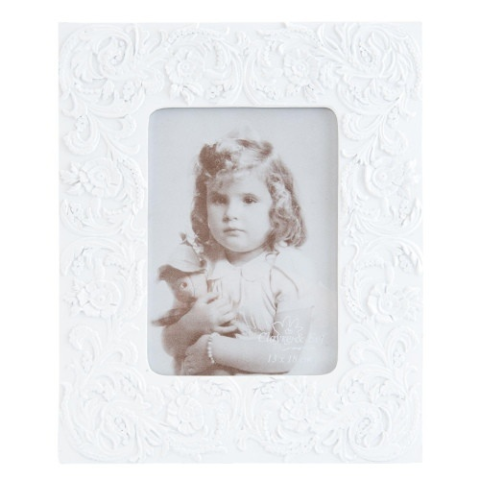 1 kép Clayre & EEf Képkeret műanyag 22x27cm fehér,virágmintás