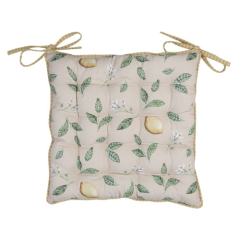 Clayre & EEf Székpárna 40x40cm,100% pamut,Lemons & Leafs lakástextília 1 kép