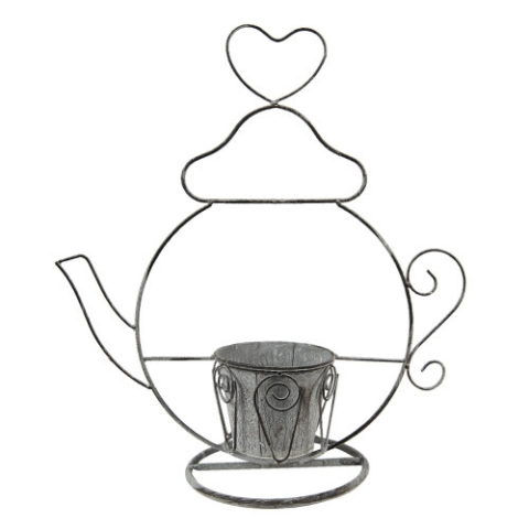 1 kép Clayre & EEf Teáskanna alakú fém virágtartó 45x20x48cm