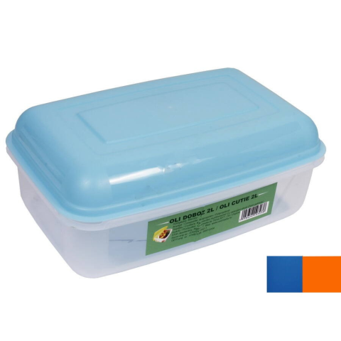 Polietilénből készült Oli tároló, szállító doboz jól záródó különböző színű fedőkkel. 2 Literes