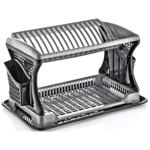 Kiváló minőségű BPA mentes műanyagból készült. A konyhai edényszárító kiváló minőségű múanyagból készült. Praktikusan a mosogató mellé helyezhető. A két szint lehetővé teszi, hogy helytakarékosan csöpögtessünk mosogatás után. A műanyag tálca felfogja