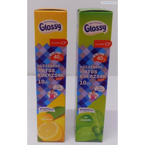 HÚZÓZÁRAS SZEMETES ZSÁK 40L ILLATOS /CSOMAG Méret:53X60 CM ÚRTARTALOM 40L GLOSSY SZALAGBEHÚZÓS SZEMETES ZSÁK 40L ÜDE MENTA VAGY CITROM ILLAT 10DB/DOBOZ