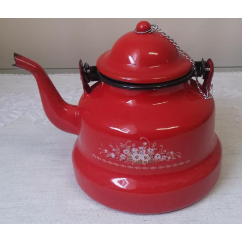 A teáskanna préselt vaslemezből készül. Használható gáz, villany, kerámia főzőlapon. A kiváló minőségről a dupla zománcozás gondoskodik A fogó biztonságos,hegesztett. Mosogatógépben mosható. Méret: Ø 18 cm, kapacitás: 2 liter Szín: piros