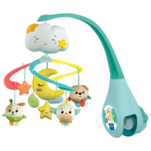 A Clementoni Baby Édes álmok - Felhős kiságyforgó a nyugodt elalvás varázslatos segítője, lágy dallamai, a kedves, puha figurák együtt teremtenek békés, meghitt légkört, amely segíti a kisbabát az álomba merülésben.A lassan forgó, textilből készült figurá