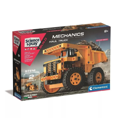 A Clementoni Mechanics Laboratory bányászati teherautó építőjáték a műszaki gondolkodás és kreativitás fejlesztésére készült. A masszív, billenőkocsis dömper modell valósághű részletekkel rendelkezik, és akár két különböző jármű is megépíthető belőle. A C
