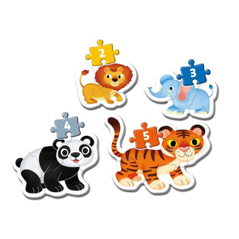 A Clementoni Első kirakóm – a vadon állatai puzzle négy egyre nehezedő kirakóst tartalmaz (2. 3, 4 és 5 db elemből álló figurák). A Clementoni első kirakóm termékcsalád, bevezeti a kicsiket a rejtvények világába. Ezeket a kirakósokat kifejezetten a legki