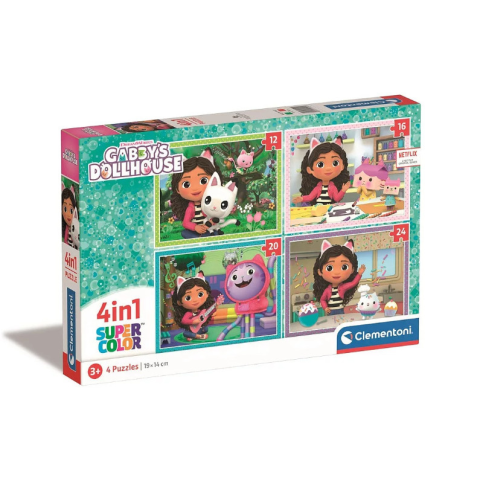 RAKTÁRRÓL AZONNAL! Gabby's Dollhouse, Gabi babaháza 4 az 1-ben puzzle Clementoni Mérete: 19x14 cm 12, 16, 20 és 24 darabos kép Kiváló minőség! 3 éves kortól ajánlott SuperColor nyomtatási technológiával.