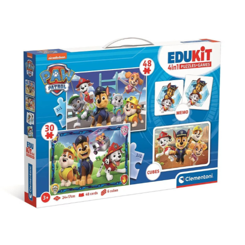 RAKTÁRRÓL AZONNAL! PAW Patrol, Mancs Őrjárat Rickety Ridge 4 az 1-ben játékgyűjtemény Clementoni Mérete: 37x26 cm Tartalma: - 1 db 30 darabos puzzle (24x17 cm) - 1 db 48 darabos puzzle (24x17 cm) - 48 darabos memóriajáték - 6 darabos mesekocka 3 éves kort