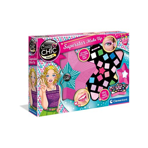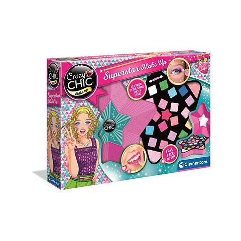Szépség szett - kis hölgyek számára, ajánlott 6 éves kortól A Clementoni SUPERSTAR sminkkészlet kis nagylányoknak 6 éves kortól. A csillag alakú színpaletta letisztult és sok kozmetikai terméket tartalmaz a csillogó megjelenésért. A Clementoni Crazy Chic Super