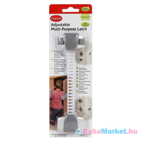 Bababiztonság a lakásban Könnyen felszerelhető, öntapadós, állítható zár. A szekrényre helyezve megakadályozza annak kinyitását. Felhelyezhető: szekrény ajtóra, fiókra, hűtőre, stb.