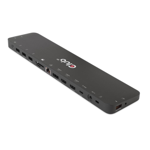 Club 3D Notebook Dokkoló - CSV-1566 (120W, USB-C to 5x USB-A Gen 1, USB-C Gen 1, 2xHDMI, DP, RJ45, SD.TF. 3,5 Jack, DC) USB Gen1 Type-C hármas kijelzős DP Alt mód Displaylink Dynamic PD töltődokkoló 120 Watt PS teljesítménnyelA Club 3D CSV-1566 USB G