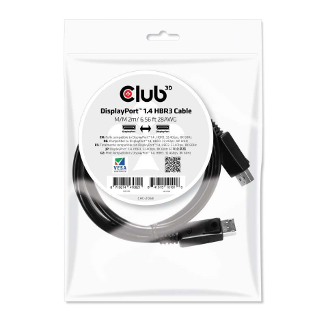1 kép CLUB3D DisplayPort 1.4 HBR3 8K60Hz kábel M/M 2m