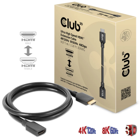 1 kép CLUB3D HDMI 2.1 Hosszabbító Fekete 1m CAC-1322