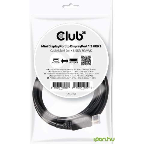 1 kép Club 3D CLUB3D Mini Displayport - Displayport 2m kábel (CAC-2163)