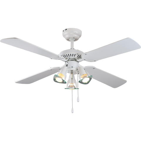 A CMI mennyezeti ventilátor kb. 225 ford./perc sebességgel friss szellőt hoz a szobájába, és négy MDF lapátjával kellemes hűvös időt hoz létre a forró nyári napokon. Fehér színű, így jól megfelel minden szobába és minden falszínhez. 3 sebességfokozattal működik, és egy 42"-os - 153 mm x 8 mm-es réztekercses motor hajtja. A szükséges 3 E 14 fényforrásokat (max. 40 W) a csomagolás nem tartalmazza.