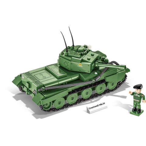 Cobi - Cromvell tank építőjáték készlet 554 darabos részletesen kidolgozott, 1:35 méretarányú Cobi Cromvell tank építőjáték készlet 1 figurával. Az összeépített harckocsi 18,2 cm hosszú és 11 cm magas. Az építőelemek kompatibilisek a Sluban, LEGO, Mega Co