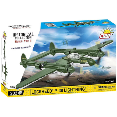Cobi - Lockheed P-38 vadászrepülőgép építőjáték készlet 332 darabos részletesen kidolgozott, Cobi - Lockheed P-38 vadászrepülőgép építőjáték készlet. Az összeépített vadászgép 24,5 cm hosszú, 33 cm széles. 1 : 48 méretarányban készült az eredeti vadászre