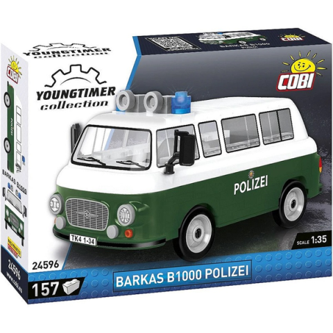 COBI: Barkas B1000 rendőrségi mikrobusz építőjáték (24596) Hivatalos magyarországi forgalmazótól. Leírás: A COBI Barkas B1000 rendőrségi mikrobusz építőjáték a keletnémet autógyártás egyik legismertebb modelljét idézi meg a rendőrségi kivitelben. A részletesen kidolgozott, 1:35 méretarányú jármű 157 darab kiváló minőségű építőkockából áll, amelyek hűen tükrözik a jármű klasszikus formavilágát. A mikrobusz forgatható kerekekkel van felszerelv