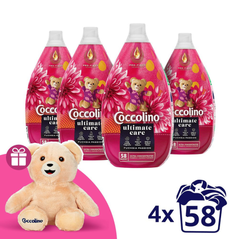 Teljes COCCOLINO Fuchsia Passion ultrakoncentrált öblítő 4x870 ml (232 mosás) termékleírás
