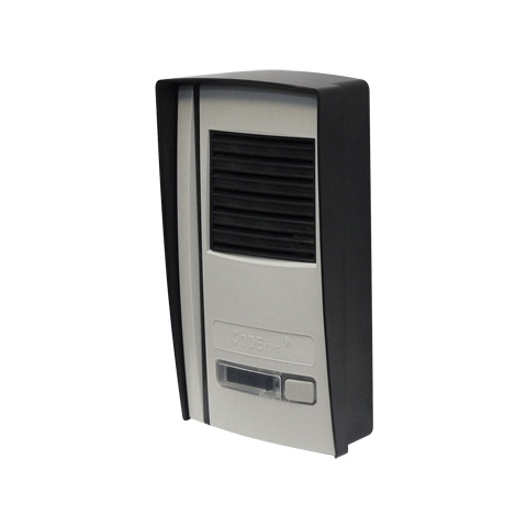 Nyomógombos kültéri egység - Analóg, diódás rendszerű erősítő. - Egy nyomógombos, műanyag kültériegység. - 1+1 vezetékes bekötés. - 12VAC elektromos zár vezérlés (maximum 1.2A). - Elektronikus csengőhang. - Fóliamembrános hangszóró (8 ohm/0,5W). - Elektret mikrofon. - Kompatibilis lakáskészülék: CODEFON diódás lakáskészülék. - Falon kívül és süllyesztve egyaránt szerelhető. - Tápfeszültség: 12VAC/150mA.