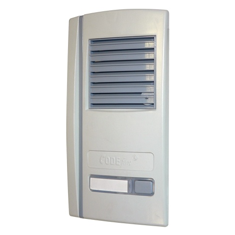 Egy nyomógombos kültéri egység műanyag előlapja - Műanyag előlap. - CODEFON 1 lakásos szett kütéri egységéhez használható. - Beépített nyomógomb, névtáblával. - Elektronika nélkül.